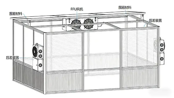 洁净棚是一种投资少、洁净级别高、安装方便的简易无尘室。通过将净化功能集成到独立框架内,实现局部高洁净环境。